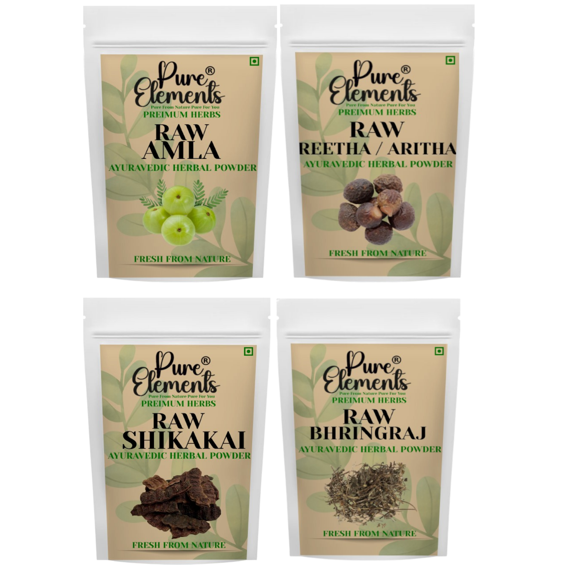 Pure Elements Herbal Hair Care Combo | Raw Amla, Reetha, Shikakai & Bhringraj ( Pack Of 500 gm )